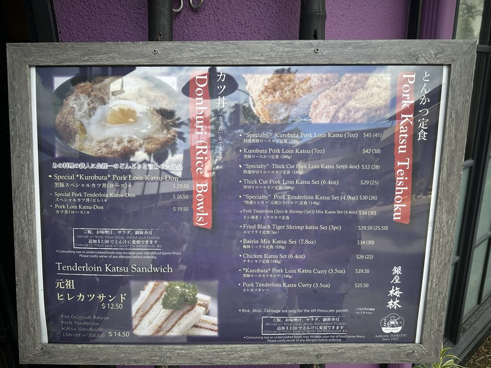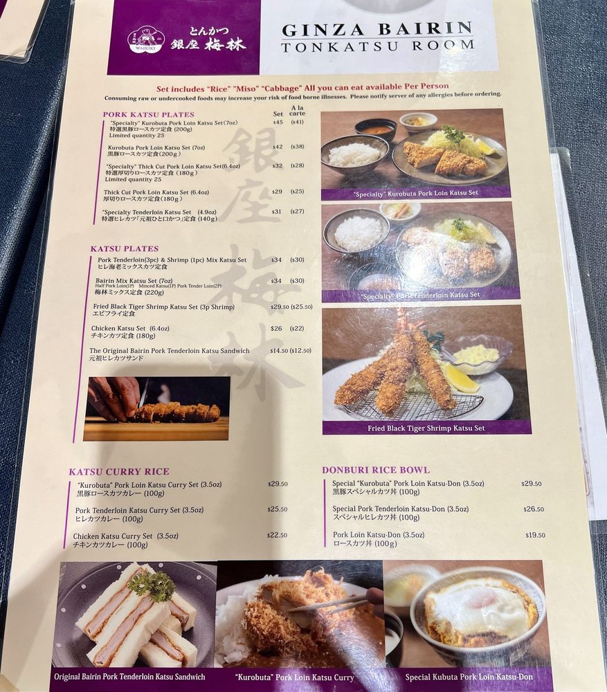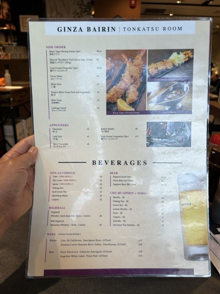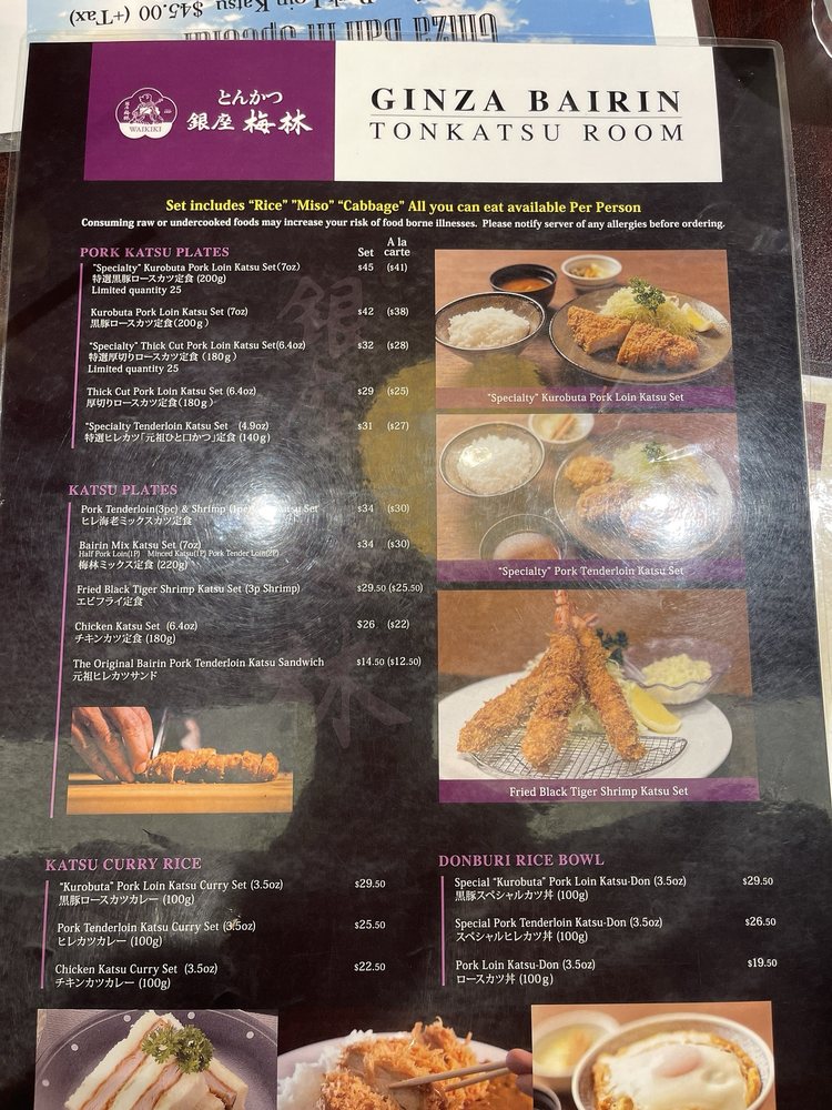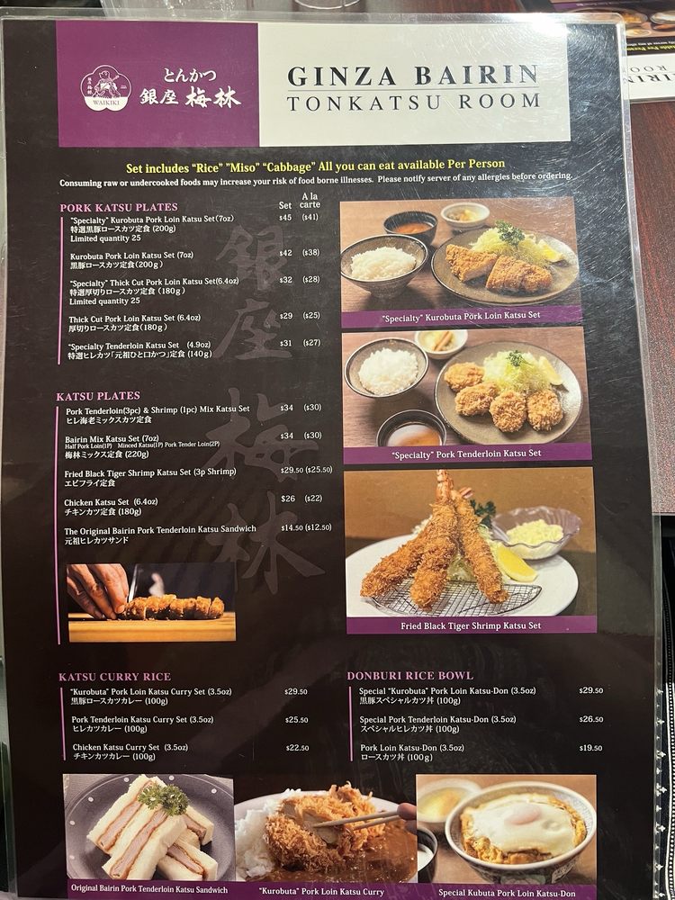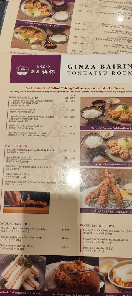 Ginza Bairin Tonkatsu & Yoshoku Bistro Menu (2025 Update)
